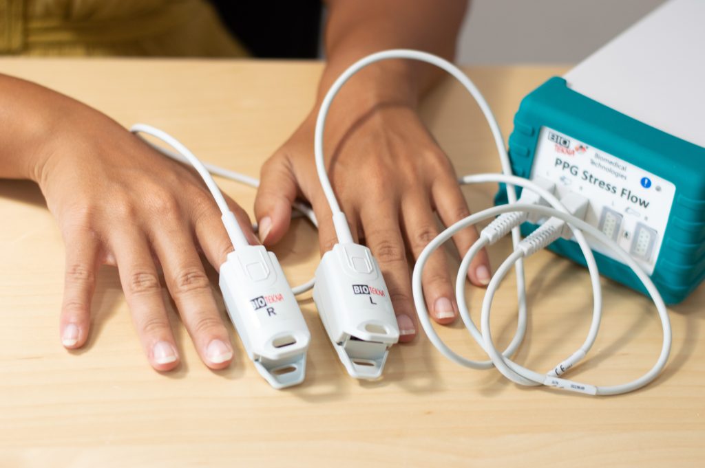 Attraverso uno strumento chiamato PPG STRESS FLOW, il test misura la variabilità della frequenza cardiaca, considerata “sintomo di salute”.